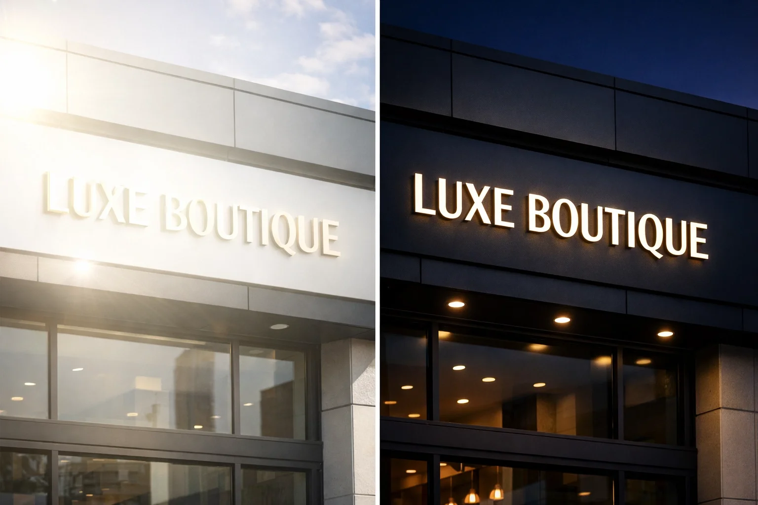 Internal illumination: LED-lit channel letters or cabinet signs that glow from within